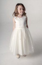 Featuring a ivory floral embroidered waistline and embroidered tulle skirt design.