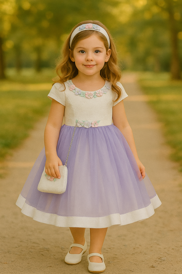 Lilac Diamante Flower Dress designed by Pembekelebek’s.
