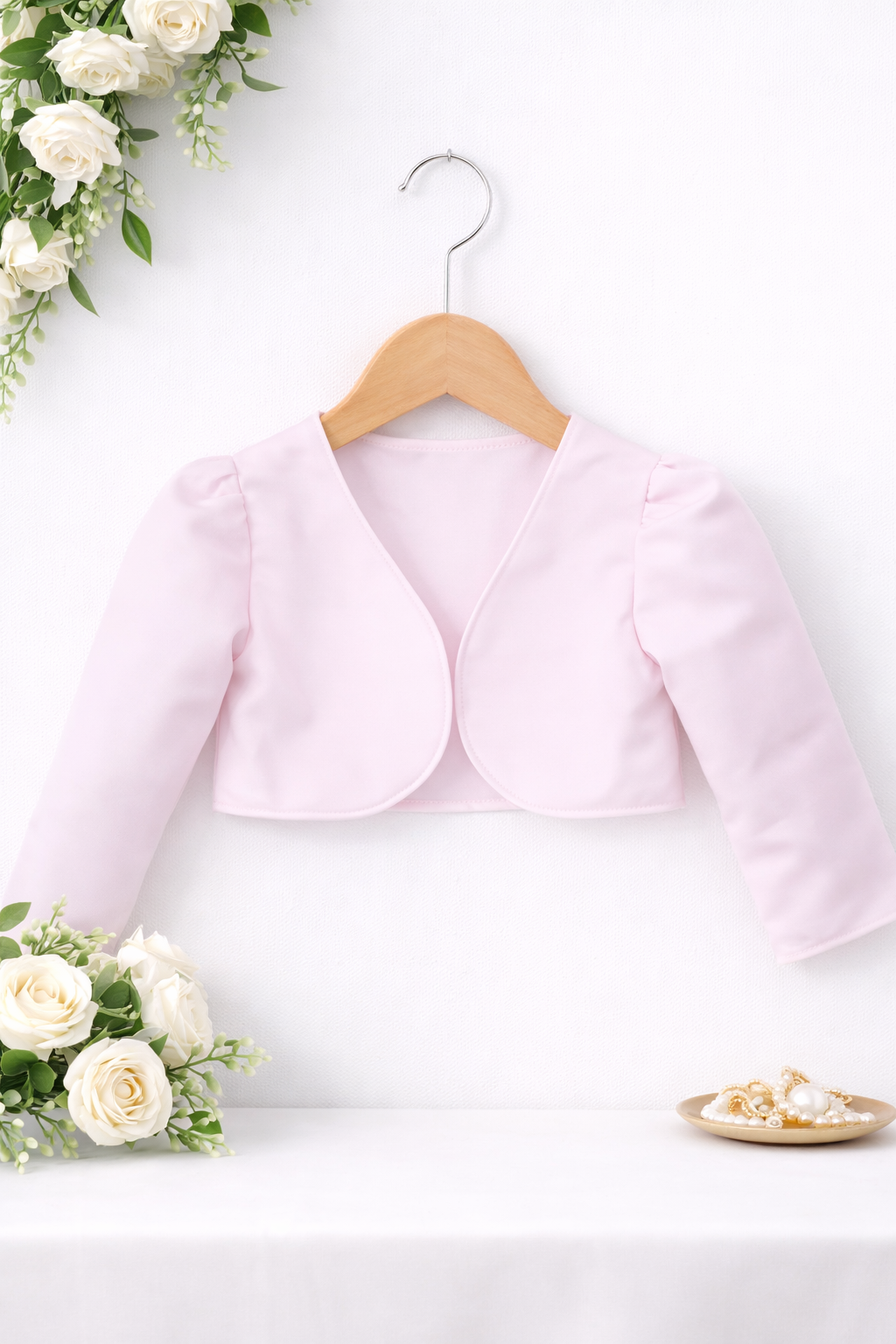 Our satin look bolero is a fashion must have for any child’s wardrobe. In a simple but classy style, this bolero has full length sleeves with puff ball shoulders, piped hemlines, is fasten-less for easy movement, and is available in a variety of colours. Teamed with a beautiful dress it will finish off any formal outfit. Made from 100% Polyester. Available in colours : White, Ivory, Hot Pink, Red, Purple, Navy, Pink, Baby Pink or Wine.