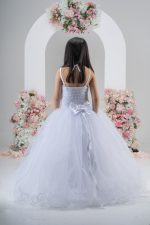 - Bodice: Intricate lace design with delicate pearl beading along the neckline and waistline, adding a touch of sophistication.