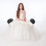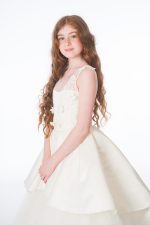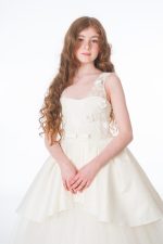 An elegant full length gown designed by Babooni. A sweet heart neckline leading into a bodice detailed with perfectly hand detailed embroidery. Delicate floral appliques arrange beautifully. A simple bow perfectly placed in the middle of the waistline. A satin peplum skirt with embroidered detail with layers of tulle flowing and a hoop to create the full skirt silhouette.