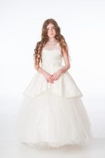 -43%An elegant full length gown designed by Babooni. A sweet heart neckline leading into a bodice detailed with perfectly hand detailed embroidery. Delicate floral appliques arrange beautifully. A simple bow perfectly placed in the middle of the waistline. A satin peplum skirt with embroidered detail with layers of tulle flowing and a hoop to create the full skirt silhouette.