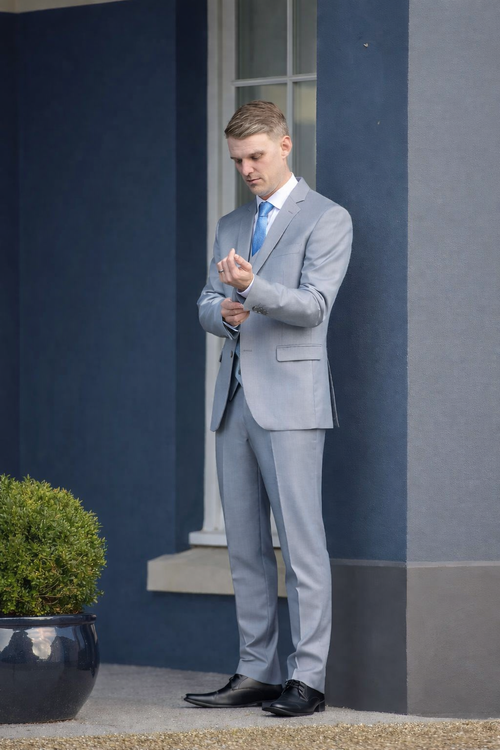 ✔ Grey Waistcoat – A refined addition for a polished three-piece look.