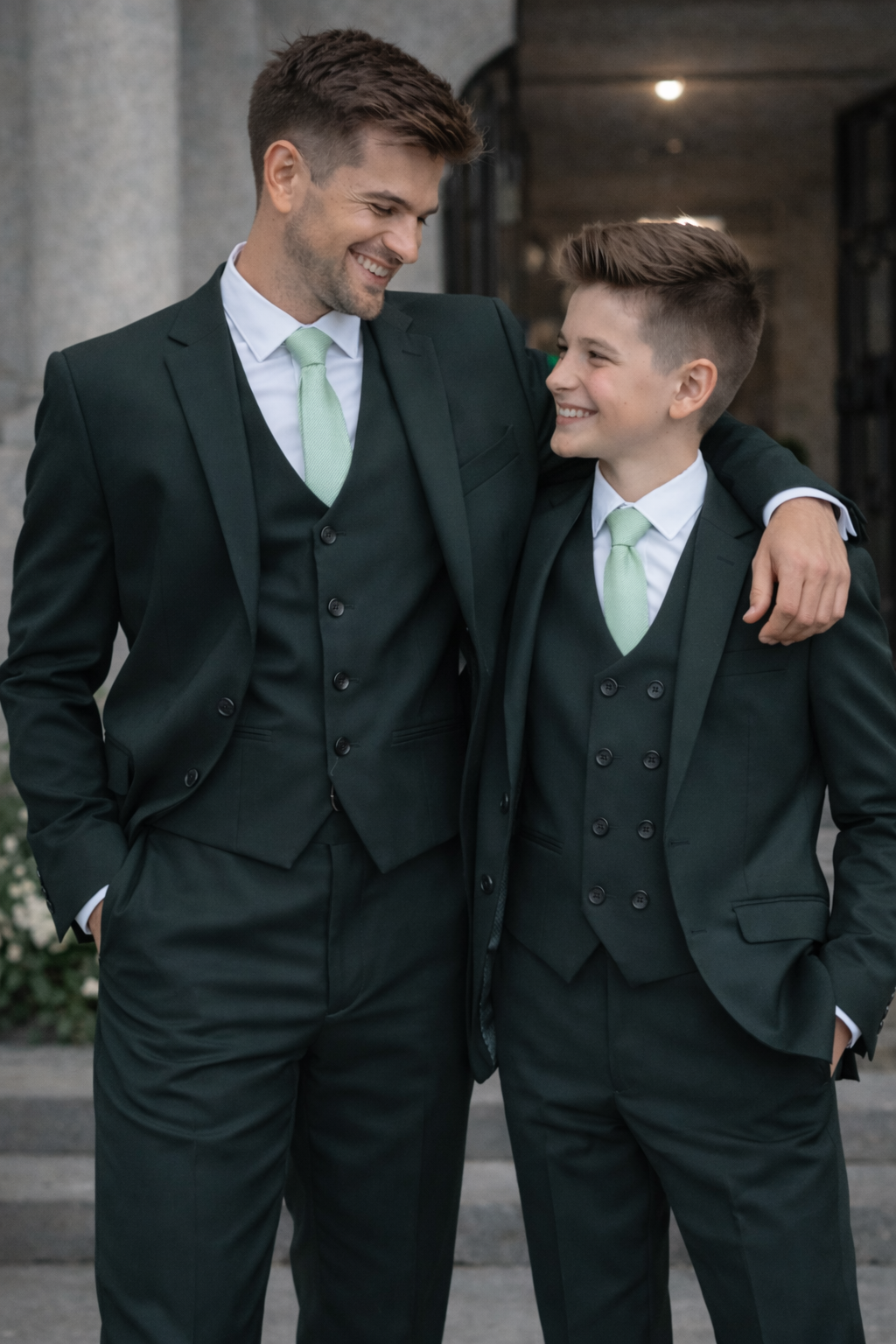 For a coordinated family ensemble, we also offer a matching Boys’ Forest Green Suit, so your little one can mirror your impeccable style for special events.