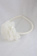 - Pom-Pom Flower: A cream pom-pom flower attached to the band for a soft, elegant touch.